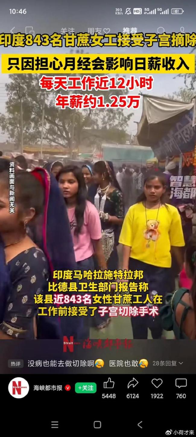 在印度,843名甘蔗女工为了保证全月上班、不影响工资收入,选择摘除自己的子宫以避免月经带来的不便。这种做法虽然出于个人选择,但背后反映出的经济压力和社会现实令人深感压抑。这些女性为了生计不得不做出如此极端的决定,让人不禁思考,未来她们还可能失去什么。