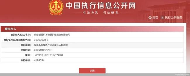 中国执行信息公开网显示,积木枝芽月子中心母公司成都创居积木母婴护理服务有限公司,在今年5月20日被列为失信被执行人,执行标的超412万元。北京商报记者向积木枝芽月子中心发送了采访提纲,并多次致电,但截至发稿暂未得到回复。