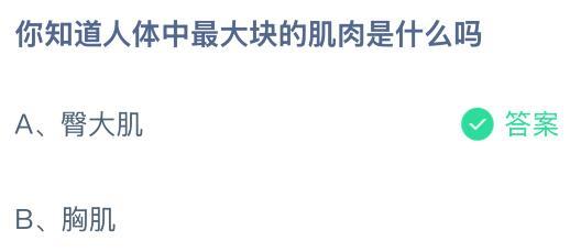 人体中最大块的肌肉是什么?这是2025年7月21日蚂蚁庄园小课堂的一个问题。答案是臀大肌。位于臀部的臀大肌负责髋关节的伸展、旋转及维持直立姿势,对行走、奔跑和爬楼梯等动作起关键作用。成年人的臀大肌平均重量约为1-1.5公斤,体积和力量远超其他肌肉。