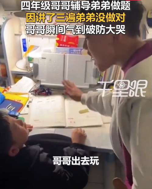 10月22日,河北沧州。四年级哥哥辅导三年级弟弟做题,讲好几遍弟弟都没懂,哥哥被气得大哭。妈妈刘女士称,开始是自己讲了好几遍崩溃了,晚饭也没做,哥哥出去玩回来饿了,主动说他来辅导,让妈妈去做饭,但弟弟还是坚持自己的想法,哥哥就被气哭了。