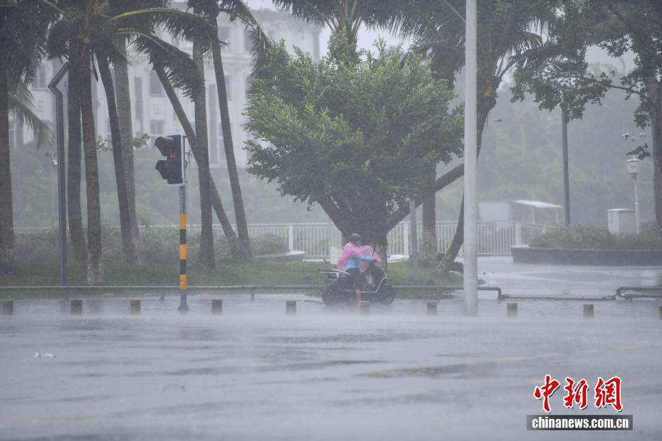 10月5日,海南海口,一市民在强风雨中出行。受今年第21号台风“麦德姆”影响,海南岛北半部出现强风雨天气。中新社记者 骆云飞 摄