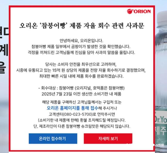 此次召回产品为原产自韩国的、2025年7月23日前生产、仍在保质期内的“鱼形派”所有批次产品。涉及的口味包括原味、糖饼味,但是不包含不同产线生产的奶油味,产品价值约15亿韩元(约合人民币784万元)。