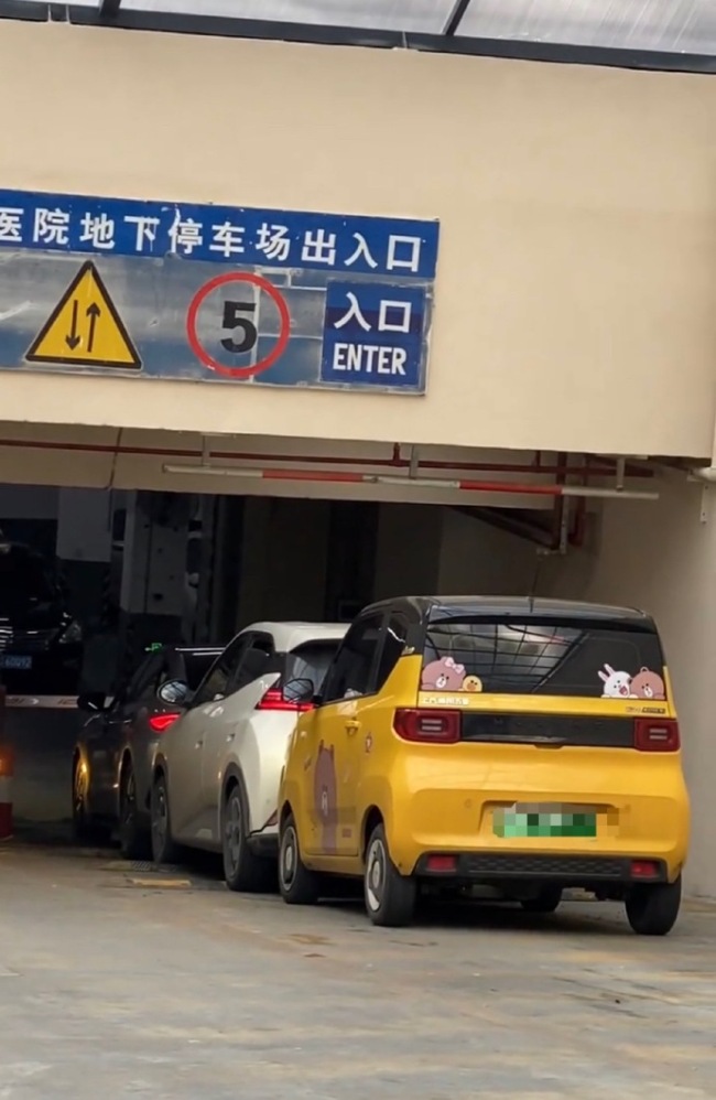 11月5日,网友爆料称:广西桂林。某医院的停车场出入口处发生了三车追尾相撞的交通事故。