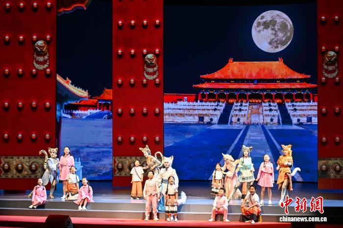 11月4日晚,第十四届中国艺术节闭幕式在重庆举行。作为中国规格最高、最具影响力的综合性文化艺术活动,本届艺术节以“艺动巴山蜀水 共绘时代新篇”为主题,由中国文化和旅游部、重庆市人民政府、四川省人民政府共同主办。本届中国艺术节汇聚数百家全国专业文艺院团和群众文艺团队,集中展演舞台艺术精品100余台、群众文艺作品170余个,展出美术、书法篆刻、摄影作品1100余件,全面展现新时代艺术创作的繁荣面貌。图为演员们在第十四届中国艺术节闭幕式中表演节目《猫神出故宫》。中新社记者 何蓬磊 摄
