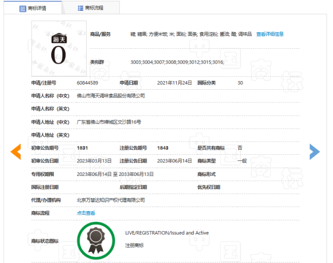 并且,海天味业也是“文字游戏”的高手。海天也如“千禾0”、“汇源100%”一样,申请了“海天0”的商标,甚至直接申请“0字中间断开”的商标,搭配各种海天其他的商标使用。