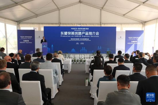 这是6月21日在德国杜伊斯堡拍摄的“东盟快班”回程首发仪式现场。新华社记者 杜哲宇 摄