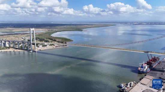 这是5月24日拍摄的莫桑比克马普托大桥(无人机照片)。新华社记者 刘杰 摄