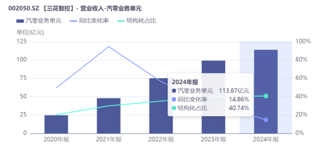 2020-2024年,公司汽零业务复合增长率高达46.5%。毛利率方面,也始终保持在25%-30%的较高水平。
