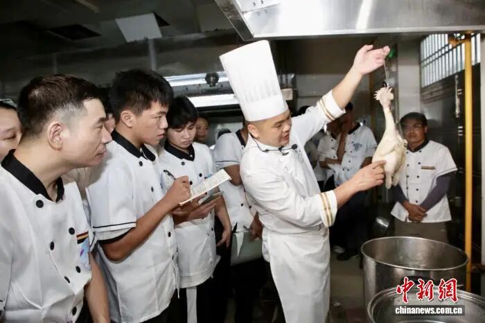 广东中山,名厨导师正在讲解白切鸡的做法要点(资料图)。中山市人力资源和社会保障局 供图